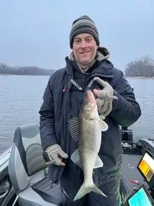 Walleye are the gold standard for eating fish around here - mild, flaky white meat that's hard to beat. These golden-colored fish with their signature glowing eyes typically run 14-20 inches in the St. Croix, though we see some pushing 25+ inches. They're structure lovers, hanging around rocky drop-offs and deeper holes during the day, then moving shallow to feed at dusk and dawn. Winter ice fishing is prime time since they stay active in cold water and group up in predictable spots. The fight isn't flashy but they're smart - they'll use current and structure to their advantage. My local tip: when you feel that subtle "tick" on your jig, don't set the hook right away. Let them take it and start moving before you set. Walleye have a habit of just mouthing the bait first, and patience pays off with better hookups.